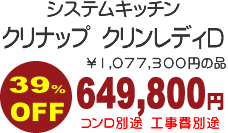 | フル装備のシステムキッチン クリナップ クリンレディD2550 | |