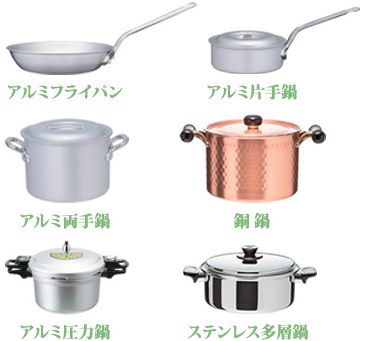 銅鍋やアルミ鍋はオールメタルタイプと呼ばれるものであれば加熱が可能です。※火力は落ちてしまいます。