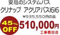 | フル装備のシステムバス クリナップ アクリアバス1616(1坪)リフォームアウトレット仕様 |