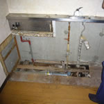 既存流し台解体・処分 木工解体工事 排水配管位置変更工事 流し台本体(コンロ台含む) 流し台組立設置工事